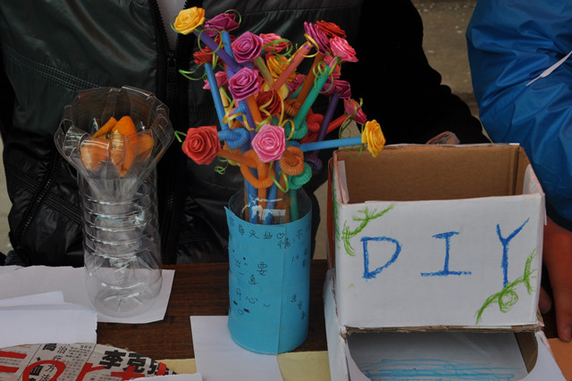 本次参赛选手有23位,选手们根据独特的环保设计理念,合理的利用吸管、易拉罐、条幅、塑料袋、报纸等材料,提前制作出一些具有独特魅力的作品,做到真正的“变废为宝”。DIY活动中每一件作品都努力诠释着环保这一主题,如:《My Flower》用废弃吸管和各色彩纸边料做成色彩艳丽的花卉,给人带来美的享受。
