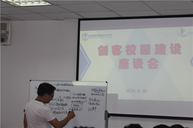 会议开始前,蓝岛创客空间主任伍智勇介绍了召开本次座谈会的原因,希望借助本次座谈会能够了解到创客校园建设过程中还存在哪些“痛点”以及蓝岛创客空间在工作和活动开展过程中还存在哪些不足和改进的建议,从而后面能够更好为校园创客服务。在近三个小时的座谈会中,每个老师和学生都加入到了头脑风暴以及现场讨论的环节中来,都提出自己对于创客以及学校蓝岛创客空间发展的一些问题和建议,现场气氛十分活跃。而且,部分老师和同学提出了一些很有创造性的建议,比如“我想做一个载人飞机”“创客活动应该跨系部开展”,“每个同学拥有一个创客梦中国梦”,“多多推荐和翻译国外网站优秀创客作品”,“增加新生创客式互动体验”,“项目资金支持分级化分阶段化”等等,建议想法十分的新颖,也十分的大胆。蓝岛创客空间管理团队十分认真的记录和回应了师生代表对于创客校园建设的想法和建议,并表示一定认真分析,尽快落实,服务于每一位创客。座谈会最后,刁爱军院长要求蓝岛创客空间要充分发挥创客训练营的影响力,让创客训练营里的每一位创客去感染和带动身边每一个有想法的同学,营造人人创客校园的良好氛围。周庆礼院长表示,创客校园建设是关系到每个师生和学校发展的重要工作,我们要有决心,要有目标,更要有行动。要不断完善创客空间硬件配置,努力培养创客导师团队,积极开展各类创客活动,构建创客网络服务平台,从而形成校园创客文化的核心力量,建设具有南京机电特色的创客生态圈。