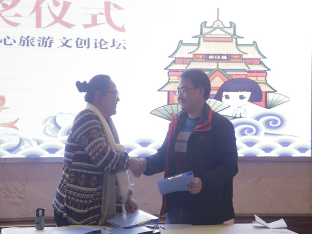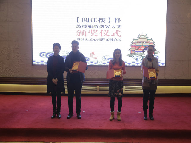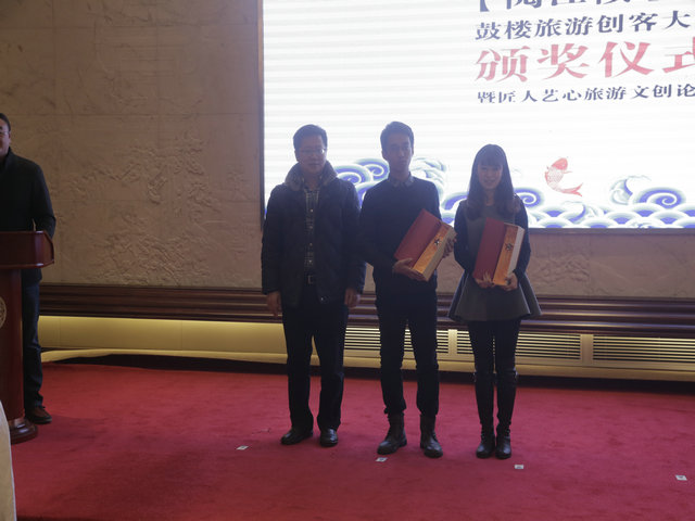 颁奖仪式上,鼓楼区委常委、副区长梁春燕为一等奖获奖选手颁发了荣誉奖牌;江南网页版院长周庆礼作为本次比赛评委代表为二等奖获奖选手颁发了荣誉奖牌;鼓楼区旅游局局长李民等领导为三等奖获奖选手颁发了荣誉奖牌;最后,南京市旅游委副主任黄琴为优秀组织奖的获奖单位蓝岛创客空间,南艺E-FabLab以及金陵科技学院颁发了荣誉奖牌。