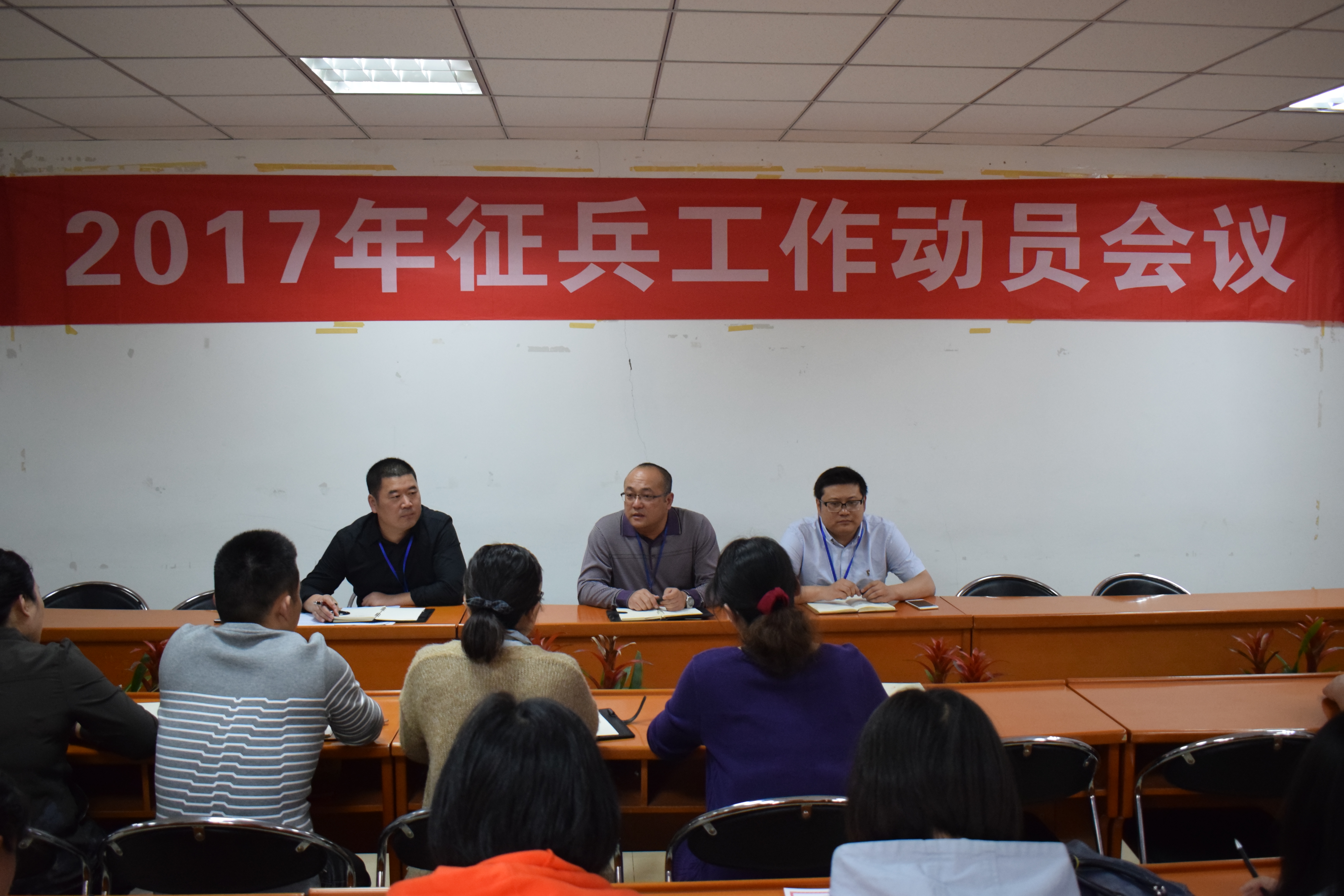 4月25日,我院2017年度征兵工作动员大会在弘德楼107会议室召开。党委委员、副院长赵学洪,学工处处长助理毕盛晟,各系部书记、干事、辅导员和武装部全体成员参加了会议。会议由学工处副处长李杰主持。