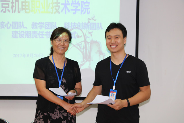会上,陈赵副院长宣读了《关于批准建设首批院级专业核心团队的决定》和《关于批准建设首批科技创新团队、教学团队的决定》,并与各团队负责人签订了建设期责任书。“先进制造”专业核心团队负责人陆晨芳老师及“中央北路69号”科技创新团队负责人王国珍老师作为负责人代表作了发言,均表示要以此次责任书签字仪式为契机,化责任为动力,把自己的团队建设成一支专业建设经验丰富、教学能力过硬、科研能力与社会服务能力较强,具有一定创新能力的队伍。