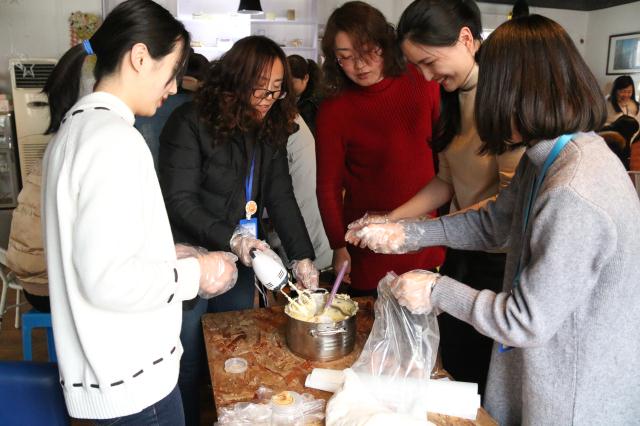 在轻松喜庆的气氛中,女教师们边学边做,大展身手,享受着制作过程的快乐。经过二个多小时的通力协作,一个个可爱的小饼干新鲜出炉。大家纷纷展示了自己的烘焙作品,品尝着自己亲手制作的美味,幸福与喜悦写在脸上,甜在心里。