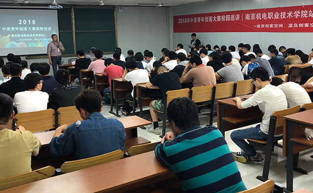 4月3日下午,2018中美青年创客大赛校园巡讲(江南网页版站)活动在教学楼C105举行,活动特邀南京创客空间创始人、中国创客空间联盟理事长郑岩峰先生,中国电科第十四研究所高级工程师、睿创空间首席技术官王众先生给大家带来2018中美青年创客大赛赛前培训巡讲。学院刁爱军副院长,蓝岛创客空间杨阳、黄克瑶、李程成老师,全体双创教育试点班学员,系部优秀学生代表参加了本次活动。