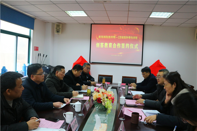 1月11日上午,江南网页版与江苏省高淳中等专业学校创客教育合作签约仪式在我院弘德楼213会议室举行。江苏省高淳中等专业学校校长芮龙兵、副校长丁金水、副校长钱自豪、副校长王旺才、办公室主任赵芬、学生处主任夏一鸣莅临我院参加签约仪式;我院纪委书记、副院长陈赵,副院长刁爱军、智能制造学院院长潘理平、院办主任彭璐、学工处处长张宝中、蓝岛创客空间主任王国珍参加了本次活动。