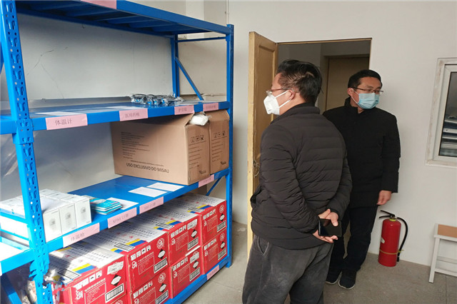学院党委书记、院长周庆礼检查防疫物资储备情况