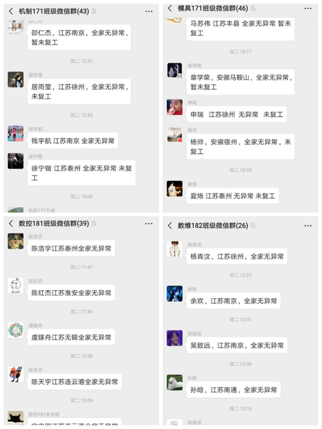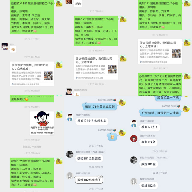 2020年的春节,对很多中国人而言,这本该是一个祥和热闹的节日,本该是阖家团圆、走亲访友的美好时刻,但是这一切都被疫情阻滞了,满心欢喜的假日变成了始料未及的漫长。“你在哪?”“身体有没有不舒服?”“家人是否都安康?”成为院系领导、辅导员老师和班委们最关心的话题,如何在短时间内掌握班级同学的身体情况、家庭住址、家人身体情况、现处位置、复工情况等,如何做好学生疫情期间心理疏导工作,这离不开院系领导的全力部署,离不开辅导员老师24小时的在线坚持,也离不开各位班干部的鼎力相助!