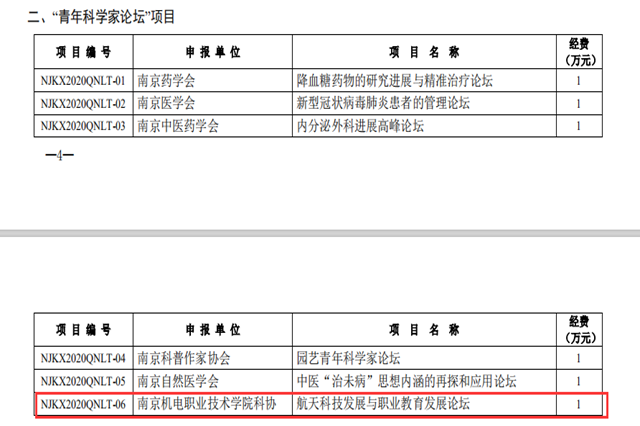 近日南京市科协公布了2020年度南京市科协学术交流及市级学会品牌建设项目的评审结果,我院科协成功获批两项2020年度南京市科协“学术交流及市级学会品牌建设”重点项目,分别为:2020年南京市科协“青年科学家论坛”——航天科技发展与职业教育发展论坛、2020年南京市第十三届青年学术年会机电分会场暨2020年南京市航天航空智能制造技术发展论坛。