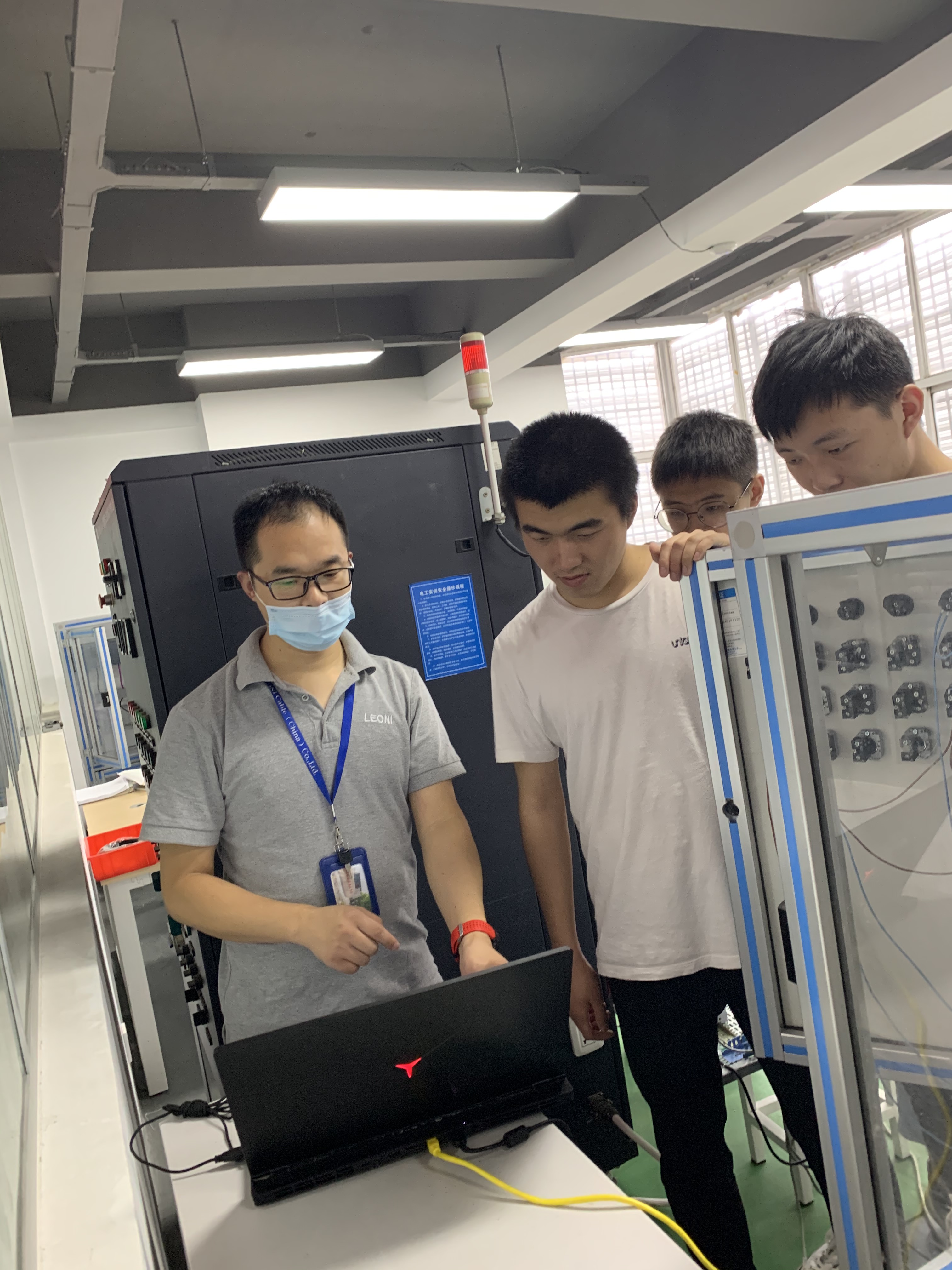 南京机电莱尼机器人学院由我院与莱尼(中国)电气线缆有限公司共建,学院主要面向自动化装备企业提供员工(准)培训服务,精准培训目标,精细培训内容,精心培训过程。首期培训于2020年6月15日开始,为期四周的培训采用小班化的教学方式,以PLC为主要内容开展。本次培训内容主要包括TIA博图软件安装、使用和操作,PLC1500基础编程,西门子1500系列介绍与操作及西门子伺服V90介绍与操作。课程通过原理讲解、现场演示、实操训练及实操分析帮助参训学员更加深刻理解自动化系统集成的相关知识。培训通过项目化指导,有效提高了参训学员的PLC实际运用能力,进一步提升了学员的岗位胜任能力。本次培训受到委托企业的好评,企业高度认可培训效果,通过定制化培训的开展,受训学员已经达到独立进入项目现场的要求。本次培训的实施,帮助企业提高了培训效率,降低了企业培训成本,是一次校企深度融合、开展精准服务的有益尝试。