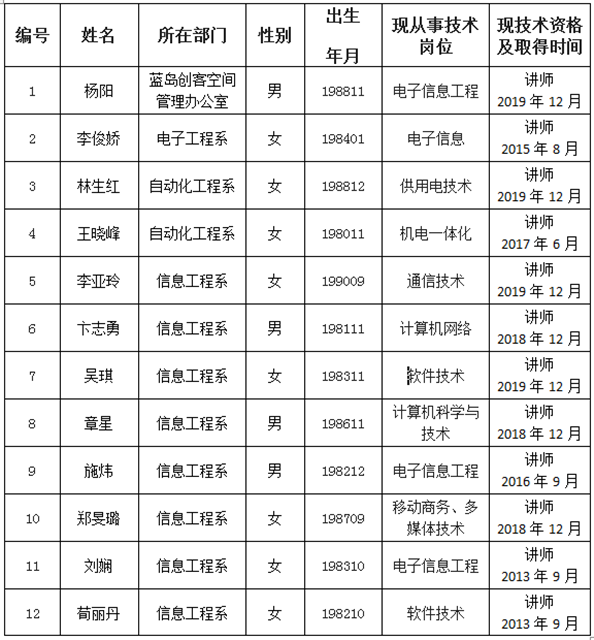 根据《关于做好 2020 年度职称评审工作的通知》(苏职称办〔2020〕41 号)、市职称办《2020年南京市职称工作要点》(宁职称办〔2020〕19 号)和《关于做好 2020 年南京市电子信息工程中、高级专业技术资格评审申报工作的通知》(宁人社学〔2020〕13 号)、《关于做好 2020 年南京市机械工程中、高级专业技术资格评审申报工作的通知》(宁机学会〔2020〕8 号)等相关文件精神,经我院职称领导小组评议,同意推荐以下人员申报工程系列中级职称,现将名单公示如下: