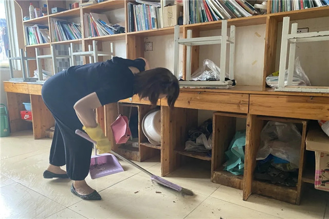 为进一步保障学生们身体健康,消除同学们的后顾之忧,营造良好学习生活环境,迎接后续入校的新生,8月20日,学工处组织宿管中心对2019级学生342间宿舍进行了整理打扫、开窗通风。宿管中心21名员工从早晨5点开始清扫行动,宿管阿姨们握着扫把,低身弯腰,将地板上的垃圾扫进畚斗,一间一间检查寝室环境卫生、开窗通风透气、细心整理归置物品、扫地清理垃圾。虽然南京的天气还是很炎热,但一想到能为学生带来舒适的居住环境,宿管阿姨们都干劲十足。清扫工作完成后宿管中心将对342间学生宿舍进行全封闭紫外线和84消毒处理,确保学生安全入住。