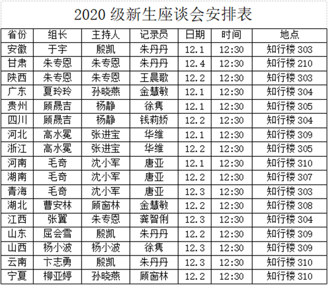 根据学院党委的学年工作部署和学院思政方案的要求,落实七彩行动之温暖行动计划,结合学院《十年参与分享计划》,为更好做好学生的服务工作,了解2020级新生的思想动态,关注新生学习、生活状况,引导学生适应大学生活,树立学习目标,听取新生诉求和意见,关心少数民族学生情况,经研究决定召开新生代表座谈会。