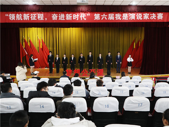 为切实加强学生思想政治教育工作,营造积极向上的红色校园文化氛围,贯彻习近平新时代中国特色社会主义思想,主动培育和践行社会主义核心价值观,让奋斗的青春绽放绚丽之花,2020年12月15日,江南网页版团委在报告厅举办了“领航新征程,奋进新时代”第六届我是演说家决赛。江南网页版科研处处长李木香、蓝岛创客空间主任王国珍、党委工作部主任助理张玥、就创中心主任沈小军、团委老师金慧敏担任本次比赛的评委。决赛由江南网页版校园之声广播站史浩天、戴玮雅同学主持。
