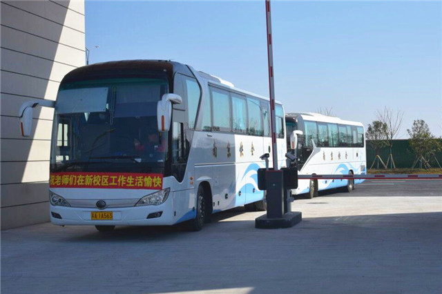 10:18分,仪式正式开始。教师代表黄晓萍致辞,黄老师回顾了自己在沧波门校区17年的工作经历,分享了和学校一同成长的难忘点滴,表达了对新校区建设的美好憧憬。学校领导班子全体成员一起在头车前合影并为头车挂上红绸带。随着党委书记、院长周庆礼的“发车”指令,载着3个系部教职工的大巴和搬家车辆驶向新校区。