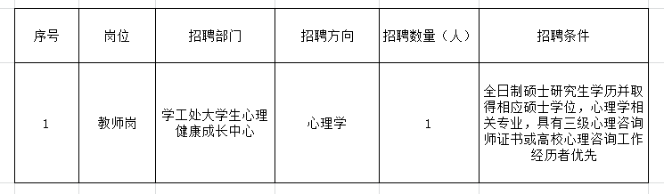 为更好地选拔优秀适岗人才,充实我校师资队伍,优化人员结构,江南网页版(公办高职院,学校网址: /)面向社会招聘学工处大学生健康成长中心心理学岗位教师。现将有关事项公告如下: