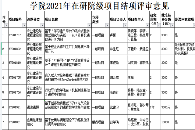 根据《关于2021年上半年院级在研科研项目结项的通知》、《江南网页版科研工作管理办法》机电学院[2012]19号、《江南网页版科研项目管理办法》机电学院[2012]20号文件精神,经科研及校企合作处审查,院专家组评审,批准我院2021年上半年学院在研科研项目26项通过结项鉴定。现将结项鉴定结果予以公示。