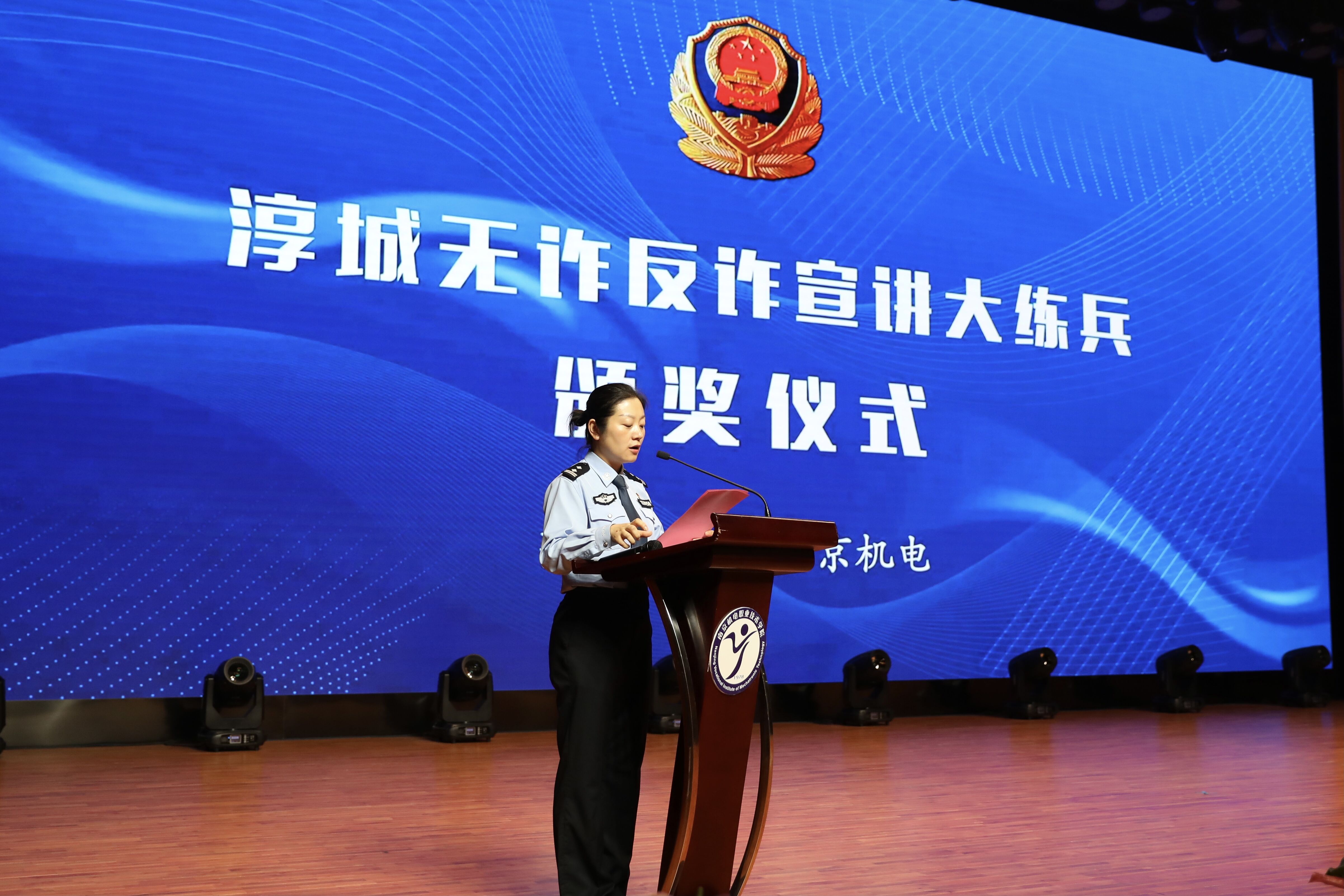 纪圣智为“淳城无诈讲师团”和学校“反诈志愿小分队”授牌,并为“最佳讲师”颁奖。