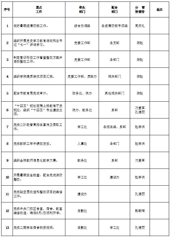 7月月度重点工作汇总表