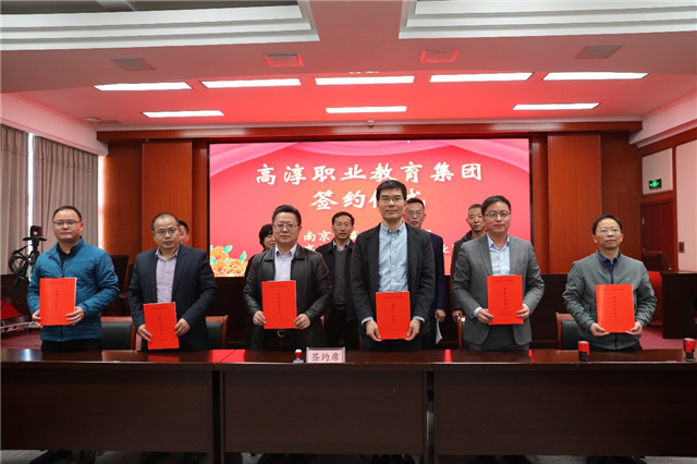 会上,我校与江苏省高淳中等专业学校、南京市高淳区淳辉高级中学、南京市高淳区第一中学、南京市高淳区滨湖小学、南京市高淳区漆桥街道办事处签订《高淳职业教育集团战略合作协议》,打造具有鲜明特色的“高淳职业教育集团”,推动中高职教育衔接、普职融通、校地融合,建立现代职业教育新机制。