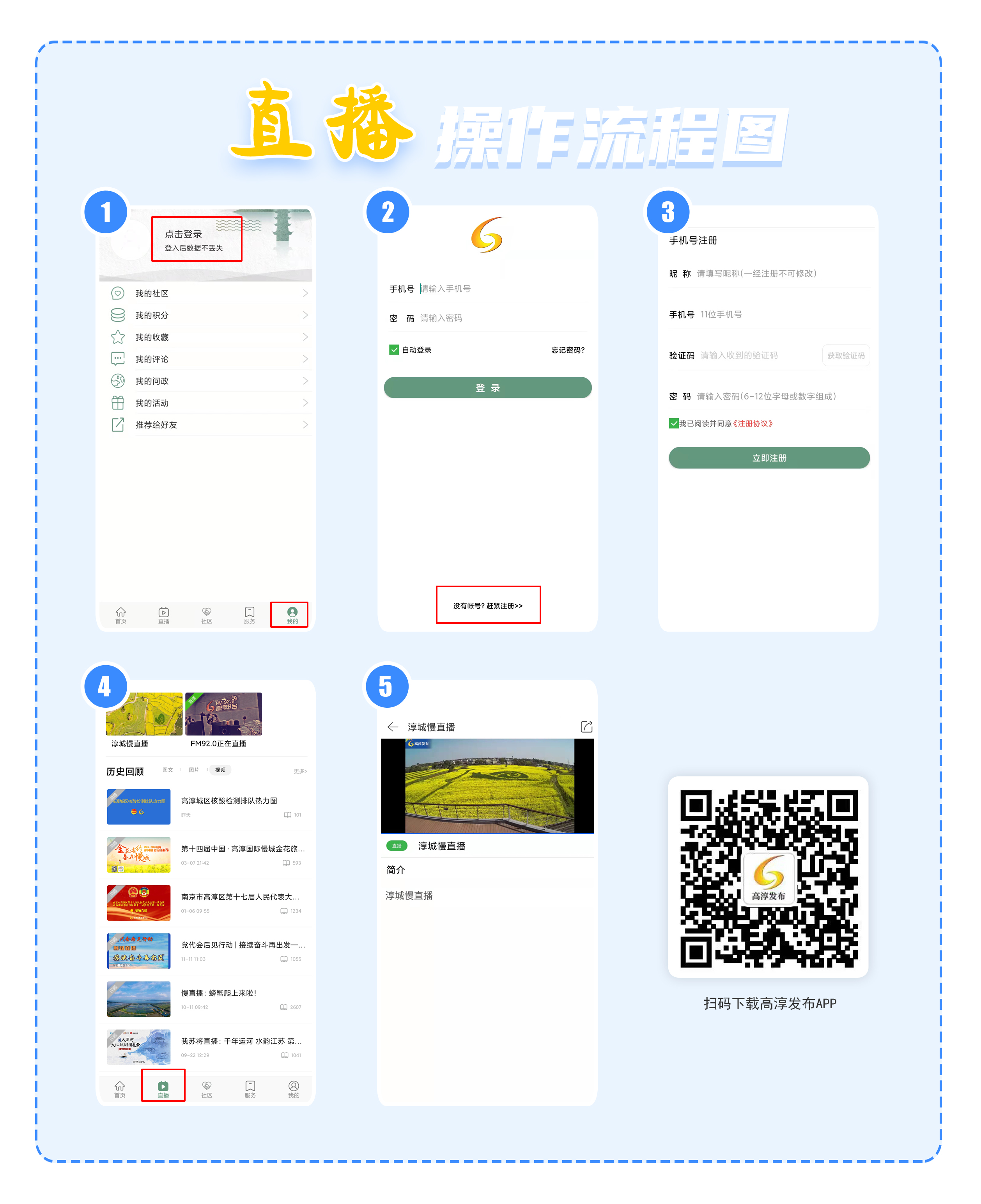 高淳发布APP下载、观看直播操作流程