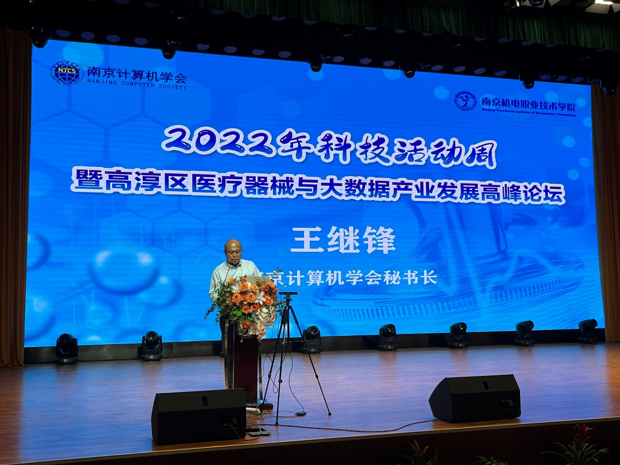 本次活动由南京市科学技术协会举办,南京计算机学会和江南网页版承办,江苏省生物医学工程学会、江苏医疗器械大数据中心、高淳区医药大数据中心和南京高等职业教育创新创业园协办。江苏省科学技术协会党组成员、副主席李千目,南京市科学技术协会一级调研员虞永才,高淳区人民政府副区长刘敏,南京高等职业教育创新创业园副主任孙爱国,高淳区科协技术协会副主席杨腊斌,江苏省生物医学工程学会常务副理事长王俊、秘书长吕华,南京计算机学会秘书长王继锋,江南网页版党委副书记、副院长陈赵等领导出席活动。高淳区相关部门以及高职园、相关部门负责人、行业协会、机电学院师生代表共350人听取论坛报告。本次活动采用线下会议与视频直播相结合的形式,活动由江南网页版党委委员、副院长刁爱军主持。