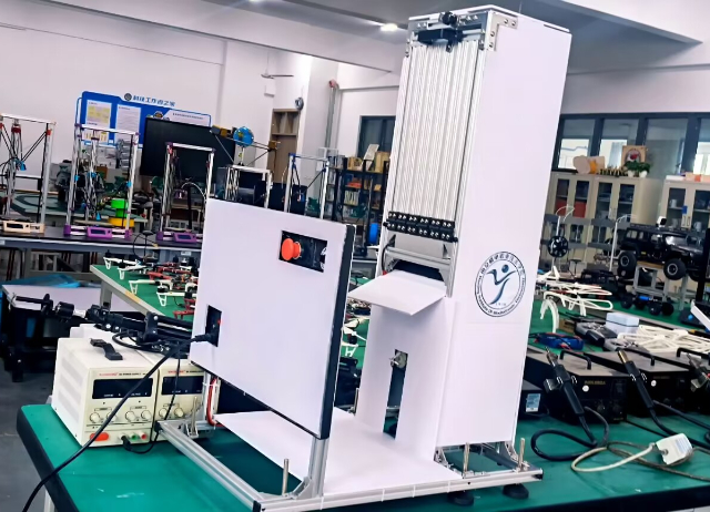 项目简介:一种机械零件加工用铁质板材表面抛光设备,包括底架与抛光结构,底架截面呈L形状且其上装设有安装板,安装板顶部固装有抛光结构,安装板内侧通过转轴转动连接有转杆;所述抛光结构包括框架、滑座、抛光块与支臂,框架为一底端封闭、顶端开口的矩形框体,框架顶侧通过夹块固定有料板,且料板伸进框架内侧;所述框架两侧端设有长孔,框架内侧设有可沿其内侧壁滑动的滑座,滑座底端通过第一弹簧连接框架底壁,滑座上方设有抛光块,抛光块靠近料板的侧端设有抛光凸起,抛光块可在滑座向下移动并压缩第一弹簧时向下移动。能实现对铁质板材进行快速且稳定的打磨抛光操作,省时省力。
