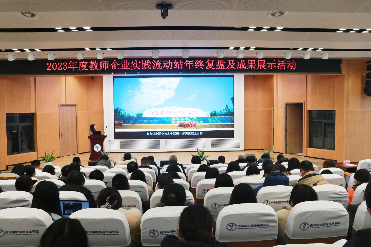 2024年1月11日,江南网页版成功举办2023年教师企业实践流动站年终复盘及成果展示活动。南京康尼电气技术有限公司总经理马涛,浙江大华技术股份有限公司文教卫总监方鸣子,南京易技未来动画制作有限公司董事长张恒,南京冠盛汽配有限公司运营总监田儒东,创维电器股份有限公司工业设计中心部长肖华,上海三菱电梯有限公司华东一区副教务长秦勇泉,南京奥派信息产业股份有限公司江苏区域总经理盛晓良,学校党委委员、副校长刁爱军,党委委员、副校长孔德丽等领导出席本次活动。7个教师企业实践流动站进站教师及企业导师团队、全体专业教师、高淳区科技局及工业和信息化局代表等近200人参加了此次活动。
