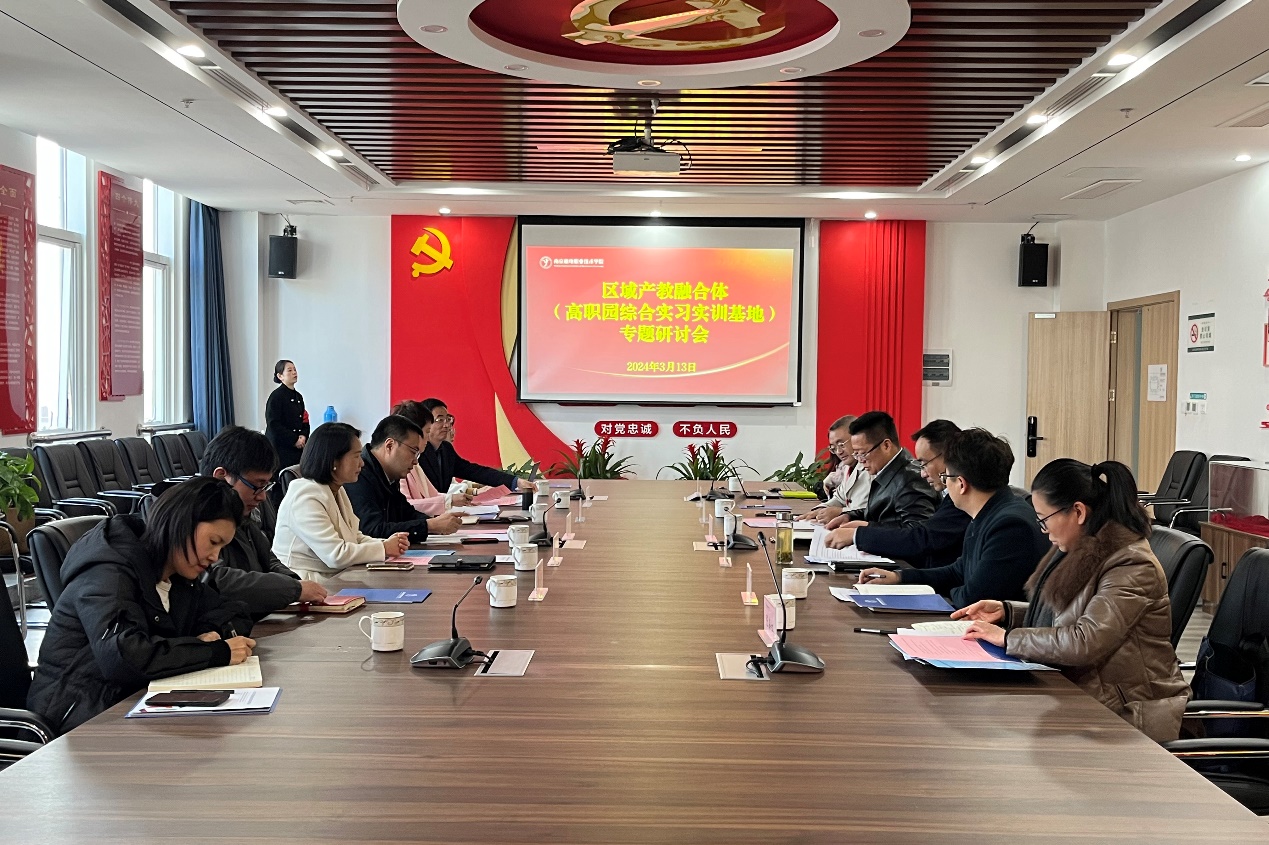 2024年3月13日上午,高淳区域产教融合体(高职园综合实习实训基地)专题研讨会在我校育德楼210会议室举行。中智科技集团产教融合项目负责人高鹏,北大深圳研究院教授、产教融合、ESG项目负责人何萍,江苏省产教融合服务平台副主任孙延建,高淳区人社局党委委员、副局长邢益松,南京高等职业教育创新创业园党工委委员、管委会副主任汪春荣,综合发展服务中心主任吴凯,南京中比新能源科技有限公司产教总经理陈梅,学校党委书记、校长周庆礼,党委委员、副校长刁爱军,科研及校企合作处处长李木香,自动化工程系主任张海红等领导出席本次会议。政校企齐聚我校,共话产教融合新未来。