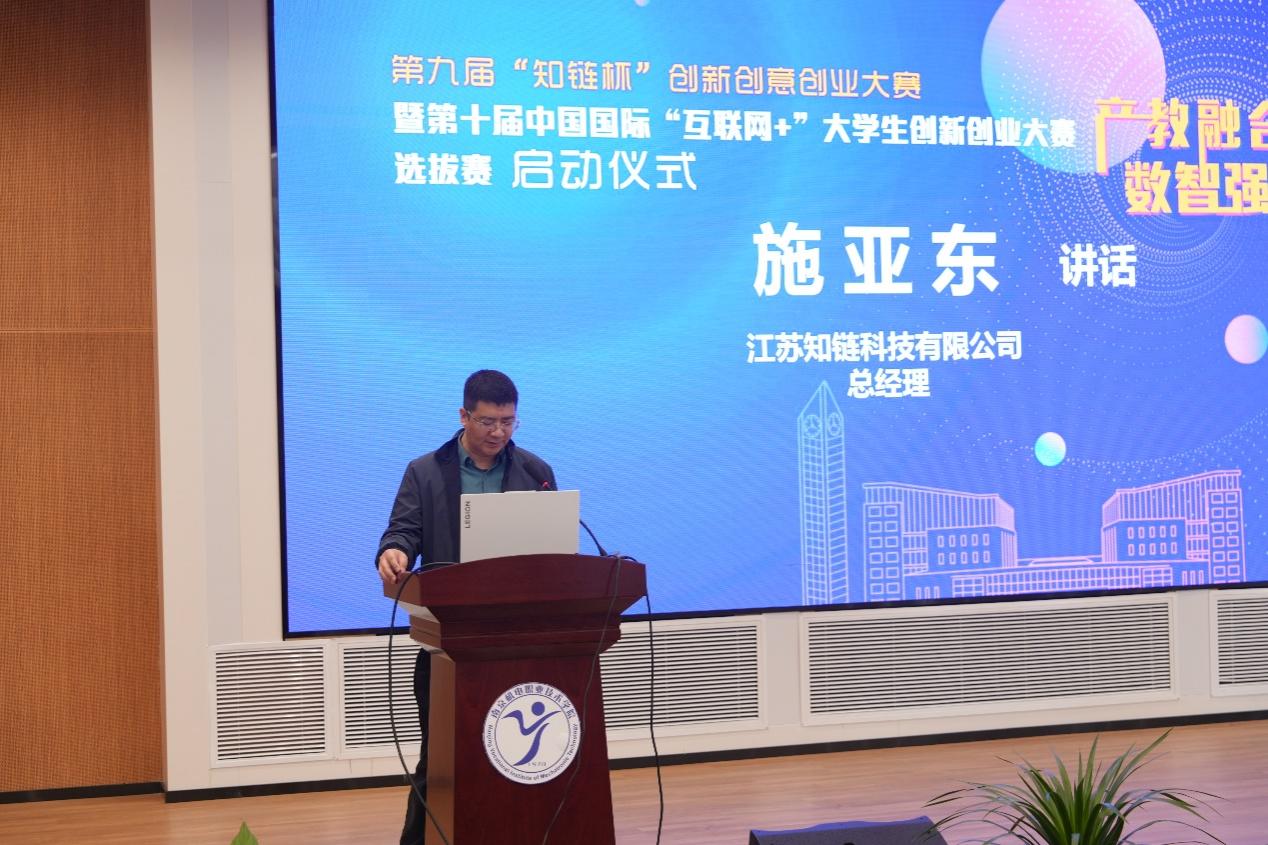 2024年3月22日,江南网页版第九届“知链杯”创新创意创业大赛暨第十届中国国际“互联网+”大学生创新创业大赛校内选拔赛启动仪式在学校乐学楼报告厅举行。本届大赛由江南网页版主办,江苏知链科技有限公司冠名,并得到了南京高等职业教育创新创业园、南京高淳高新技术产业开发区管理办公室、南京市高淳区科学技术协会等协办单位的大力支持。
