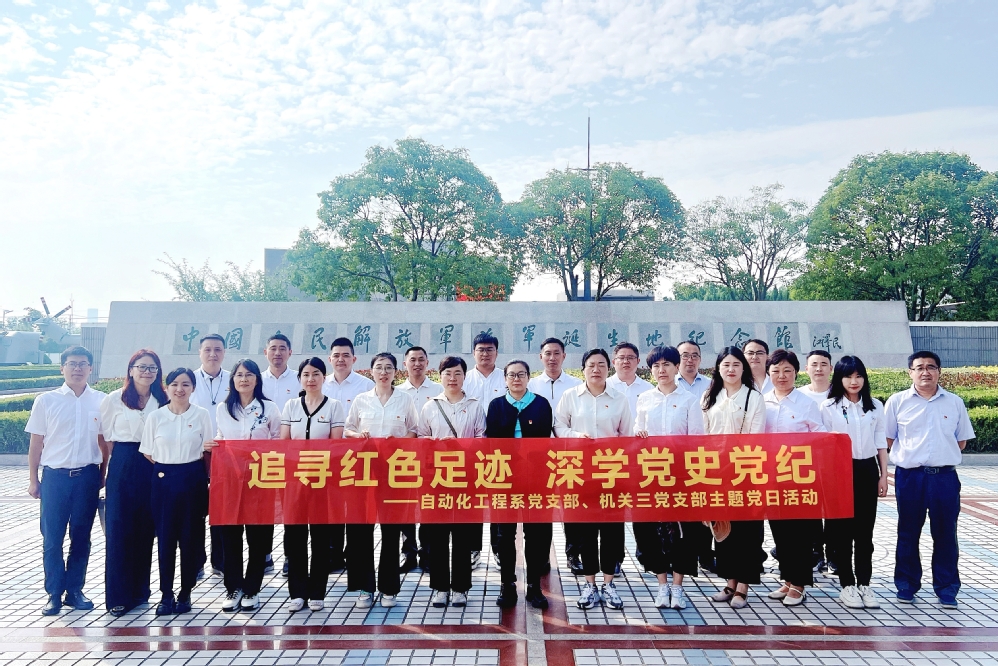 为扎实落实《党史学习教育工作条例》《中国共产党纪律处分条例》,引导党员学纪重温峥嵘岁月,守纪筑牢初心信仰,让百年党史与党纪学习教育“同频共振”,在人民海军成立75周年之际,2024年5月31日至6月1日,自动化工程系党支部、机关三党支部全体党员集中赴泰州开展“追寻红色足迹 深学党史党纪”主题党日活动。党员干部走进中国人民解放军海军诞生地纪念馆、新四军黄桥战役纪念馆等革命传统教育“第二课堂”现场学党史明党规,守党纪强党性,知敬畏守底线。学校党委委员、副校长孔德丽参加主题党日活动。