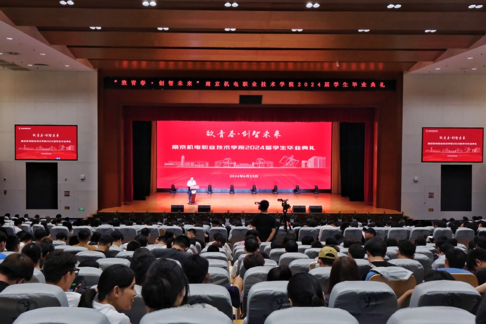 党委书记、校长周庆礼为2024届毕业生送上寄语,他代表学校向毕业生表示热烈的祝贺和诚挚的祝福,向辛勤培育学生的老师们表示致敬和感谢。他回首三年时光,同学们用热辣滚烫的青春,书写了属于鹿鸣大道33号的故事;用努力拼搏的意志,共同见证学校跨越式发展;愿未来毕业生们也可以用意气风发的姿态,绘画出属于中国青年的绚丽画卷。他希望同学们无论走到哪里,都要不忘校训,敢闯敢拼,发扬南机电人的精神气质,将人生的篇章写得更加华彩!在毕业之际,他与同学们分享三句话:一是向下扎根,用坚定的初心,脚踏实地为人生锚定方向;二是向上生花,用创新的精神,风雨无阻向目标蓄力扬帆;三是逐光而行,用过硬的信念,锲而不舍向理想逐浪前行。