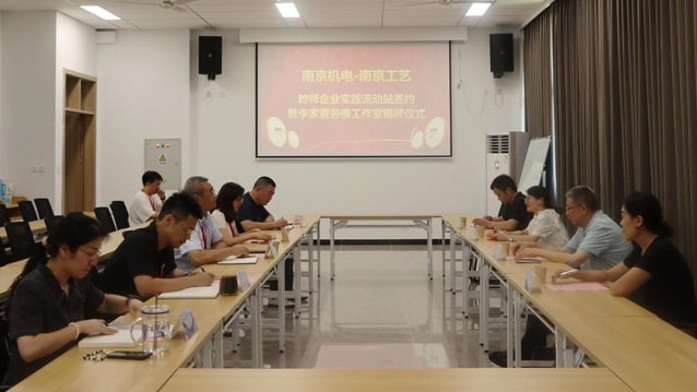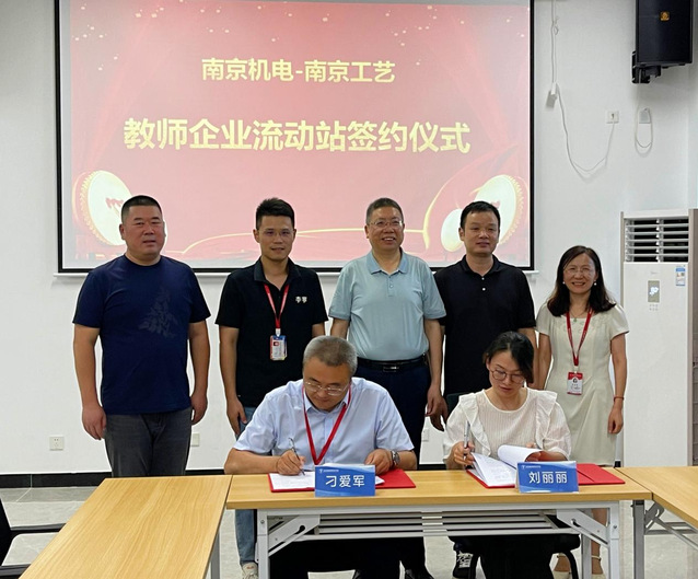 7月5日,南机电—南京工装党建共建教师企业实践流动站签约暨李家喜劳模工作室揭牌仪式在学校笃行楼401顺利举行。南京工艺装备制造股份有限公司党委书记赵如平,纪委书记刘丽丽,党办主任王帆,南京市劳模李家喜,学校党委委员、副校长刁爱军,科研及校企合作处处长李木香,机械工程系主任毛奇,党支部副书记李杰等嘉宾和领导出席了本次仪式。本次活动由刁爱军主持。
