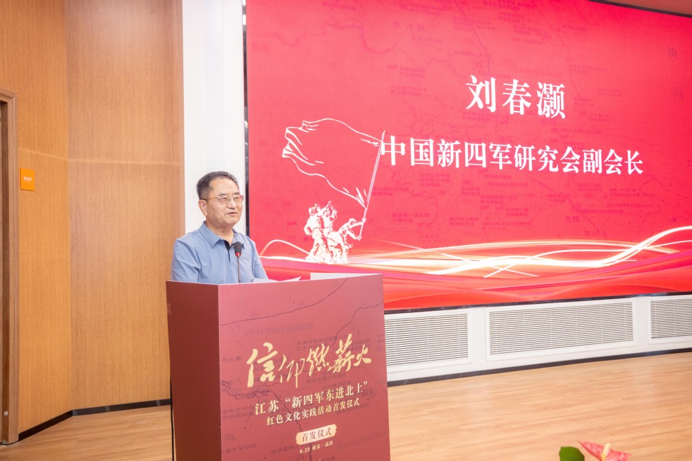 中国新四军研究会副会长刘春灏在致辞中表示,“东进北上”是新四军发展史上一段不可磨灭的辉煌历史,在江苏公布的革命文物名录中,与新四军有关的史迹、旧址等不可移动文物233处,其中国保单位7处、省保单位34处、市县保单位192处。目前,备案的全省革命纪念馆数量46个,与新四军有关的革命纪念馆就有12个。这些丰富的红色资源,是我们深入学习党史和革命历史、汲取丰富精神滋养的生动教材。