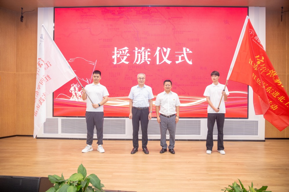 为庆祝新中国成立75周年,更好迎接和纪念抗战胜利80周年,在江苏省委宣传部、江苏省委党史工作办公室、江苏省档案馆、江苏省文物局、江苏省退役军人事务厅的指导支持下,我校联合中国新四军研究会和新华日报交汇点新闻“薪火”频道开展江苏“新四军东进北上”红色文化实践活动,以创新方式推动红色资源传承保护利用,鼓励思政教学通过实践活动淬炼身心,弘扬革命文化,争做新时代铁军,争创佳绩。