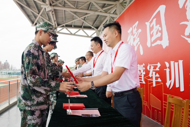 大会在庄严的国歌声中拉开帷幕。党委委员、副校长刁爱军宣读军训表彰决定。校领导依次为军训优秀学员、军训文明宿舍、军训优秀指导教师、军训优秀教官颁发荣誉证书。党委书记、校长周庆礼向承训部队赠送锦旗。