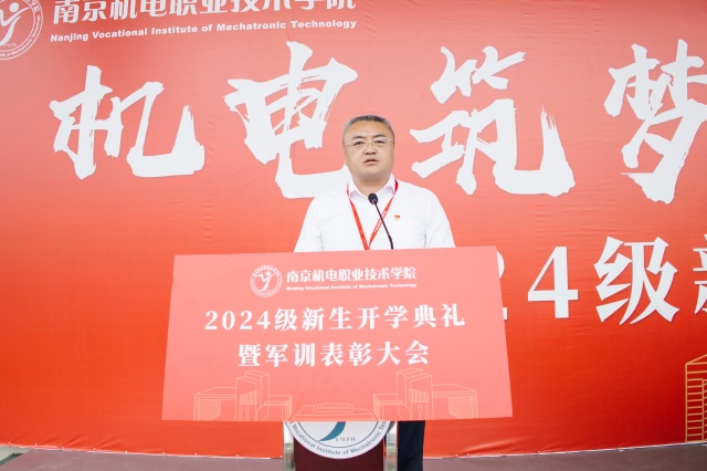学校党委书记、校长周庆礼以《躬身笃行,逐光奋进》为主题在大会上发表讲话。他代表学校向来自18个省份的2670名新生表示祝贺和欢迎,向陪伴孩子们成长的家长、悉心教导的老师和支持完成军训的全体教官致以崇高的敬意,并向同学们提出了“十个一”的要求:进行一次认真彻底的宿舍大扫除,参加一个让自己成长的社团,和老师认真探讨一次专业问题,创作一件创意创新作品,做一份较为细致的职业规划书,写一封给父母和最亲近的人的信,读一本能改变自己的名著,找到愿意和自己一同前进的一群伙伴,练就一副好身体,保持一颗积极进取的心。让同学们从读好书、长才干、会交流、懂合作、会感恩等方面来培养个人修养。同时也鼓励同学们要积极融入社会并投身建设,在实践中实现自我价值,遇到更好的自己。最后他希望,全校师生与鲲鹏齐飞,秉承“知行合一,自强不息”的校训精神,勤学善思、明理笃行,以更加饱满的昂扬斗志和一往无前的奋进姿态,奋力书写为中国式现代化建设挺膺担当的青春篇章!