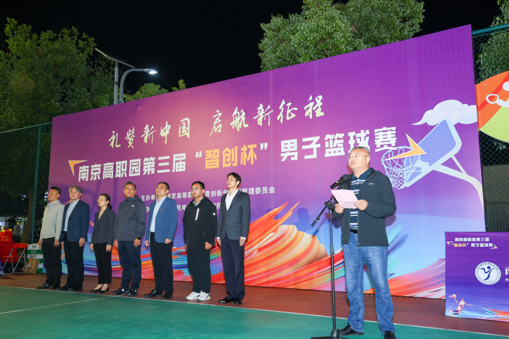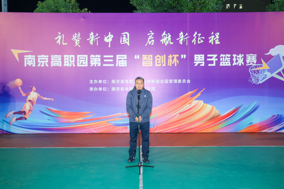 为庆祝新中国成立75周年,深入学习贯彻党的二十届三中全会精神,推动文化事业发展,强化校企地融合,加强园区“智创”党建联盟成员单位交流。10月23日,由南京高等职业教育创新创业园管理委员会主办、江南网页版承办的2024年南京高职园第三届“智创杯”男子篮球赛在我校顺利开幕。开幕式由党委委员、党委工作部副部长高水冕主持。