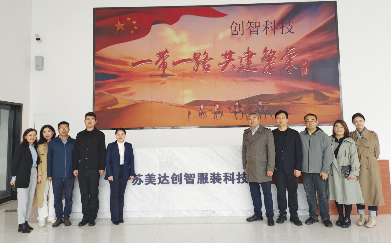 紧接着,刁爱军一行移步江苏苏美达创智服装科技发展有限公司,参观了服装服饰生产基地,并就推动“数智”转型工作进行交流。面对数字化转型的浪潮,双方共同探索了大数据、人工智能等技术在提升服装产业智能化水平、促进产业升级中的应用,学校也将为苏美达的数字化转型提供强有力的科研力量和技术支持。