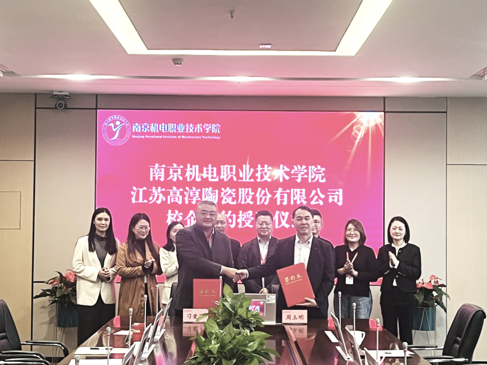 签约为始,启校企合作新程。授牌为基,谱未来发展华章。江南网页版和江苏高淳陶瓷有限公司将携手共绘新画卷。
