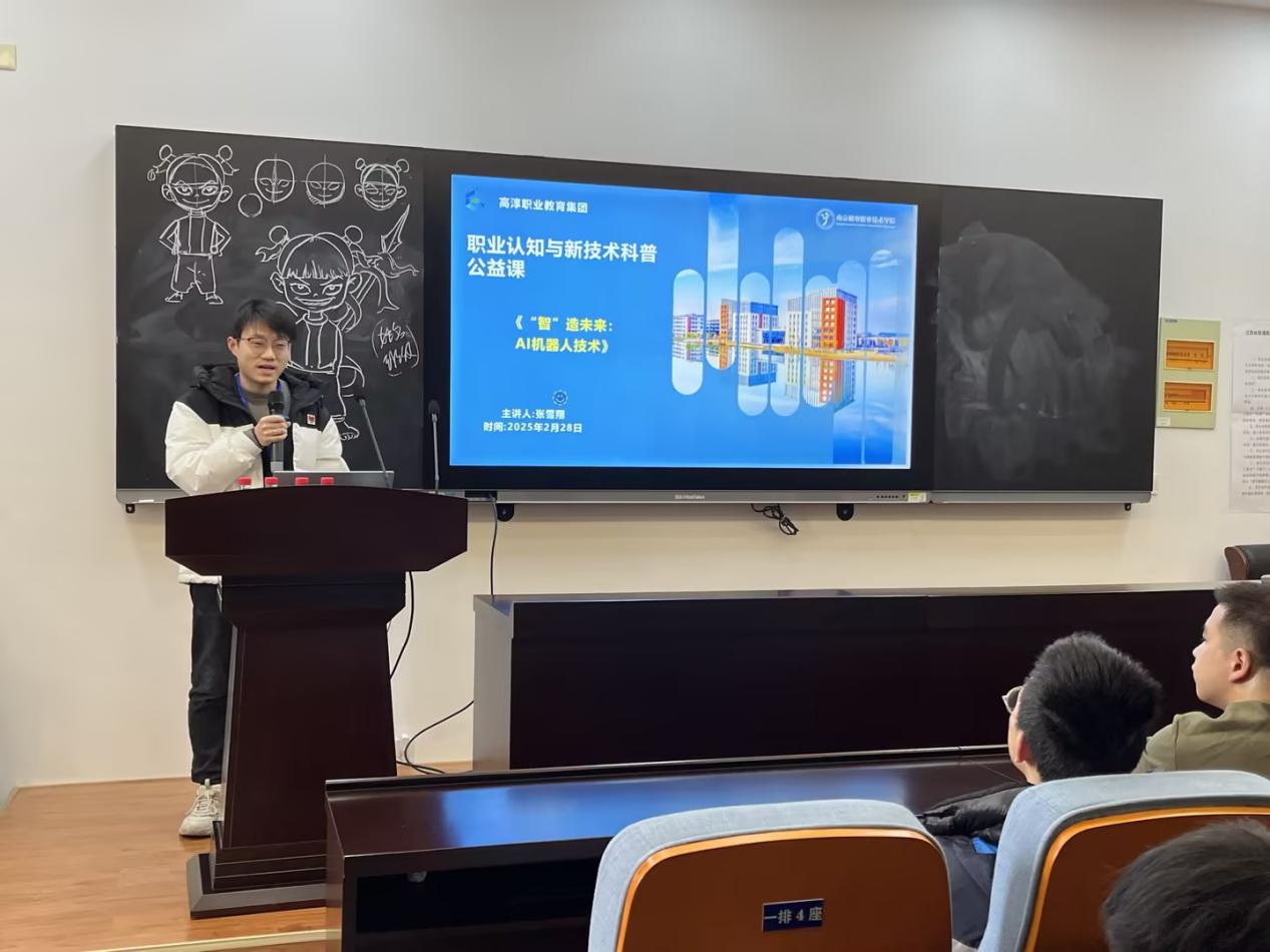 《“智”造未来:AI机器人技术》课上,学校自动化工程系专业教师张雪翔带领高中生走进了一个AI机器人的智慧世界,讲解了AI机器人概况、核心技术以及未来发展趋势。张老师还演示了如何使用现在最热门的大语言模型Deepseek完成各种任务,并鼓励同学们加入到人工智能技术的探索与开发中。