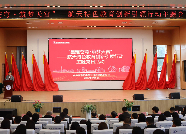 2025年3月6日14:00,江南网页版在乐学楼101举办了“星耀苍穹・筑梦天宫”航天特色教育主题党日活动,本次活动旨在响应习近平总书记的号召,激发学生的科学兴趣,弘扬航天精神,培养学生的创新精神和实践能力,推动学校专业建设与航天文化的深度融合。中国航天科技集团有限公司党组副书记、董事方向明,中国人才研究会副会长、航天科技教育联盟秘书长、北京航天探索馆馆长周岫彬,航天科技集团党群工作部三级业务经理张广科,北京神舟航天软件技术股份有限公司市场营销部主管张凇铭,学校党委书记、校长周庆礼,党委委员、副校长刁爱军,党委委员、副校长孔德丽,党委委员、纪委书记姜振宇,党委委员夏玲玲、党委委员高水冕以及全体党员教师和学生代表参加了本次活动。