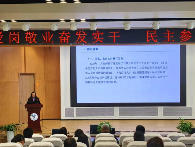 会议聚焦审议《江南网页版教职工考勤及请假管理办法》,由校党委委员、人事处处长夏玲玲进行详细解读。这一管理办法与每一位教职工的日常工作息息相关,关乎学校教学与管理秩序的稳定。在解读过程中,夏玲玲对各项条款的制定背景、目的及具体执行细则进行了深入阐释,让与会代表们对管理办法有了更清晰、全面的认识。
