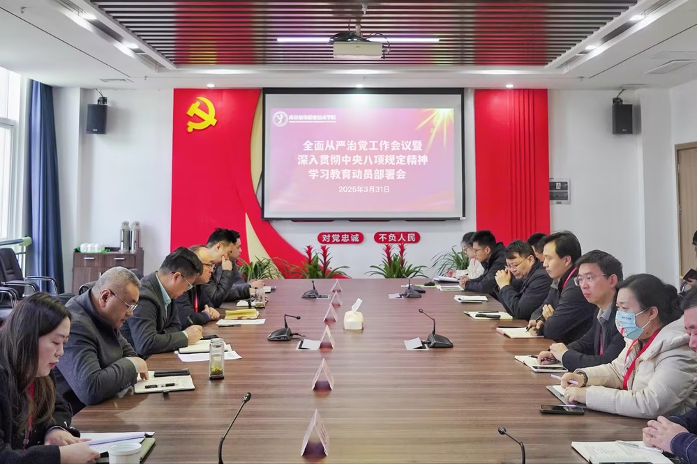 为贯彻落实党的二十大精神和二十届三中全会精神、《关于在全党开展深入贯彻中央八项规定精神学习教育的通知》要求,巩固拓展学习贯彻习近平新时代中国特色社会主义思想主题教育成果,巩固深化党纪学习教育成果,锲而不舍落实中央八项规定精神,推进作风建设常态化长效化,持续推动全面从严治党向纵深发展,我校于3月31日召开学校2025年全面从严治党工作会议暨深入贯彻中央八项规定精神学习教育动员部署会。全体党委委员、党支部书记、职能部门负责人以及系部主任参加,会议由党委副书记、副校长赵学洪主持。