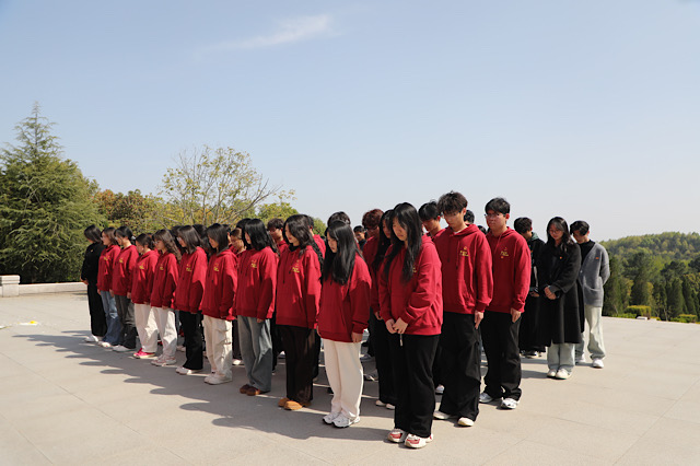在庄严肃穆的纪念碑前,师生们整齐列队,神色凝重。低沉的哀乐响起,全体人员低头默哀,致以对革命先烈的深切缅怀。青马班学员迈着坚毅有力的步伐,向纪念碑敬献花圈,校团委书记孙晓燕整理缎带,饱含着对先烈的无上敬意。