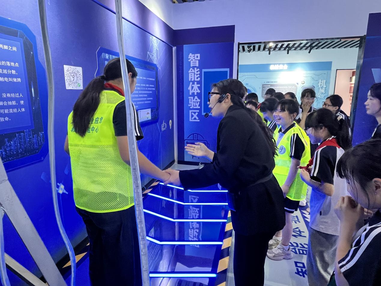 在安全应急教育体验中心,保卫处尹小雨老师带领孩子们体验了消防场景模拟灭火、VR地震体验舱、VR模拟逃生等项目。一名高淳区砖墙中心小学的学生分享了体验感受:在体验模拟灭火中,我们在身临其境中学会了灭火器的使用方法,我们仿佛就在火灾现场进行灭火作业,让我们增长了应急救援的知识和技能。