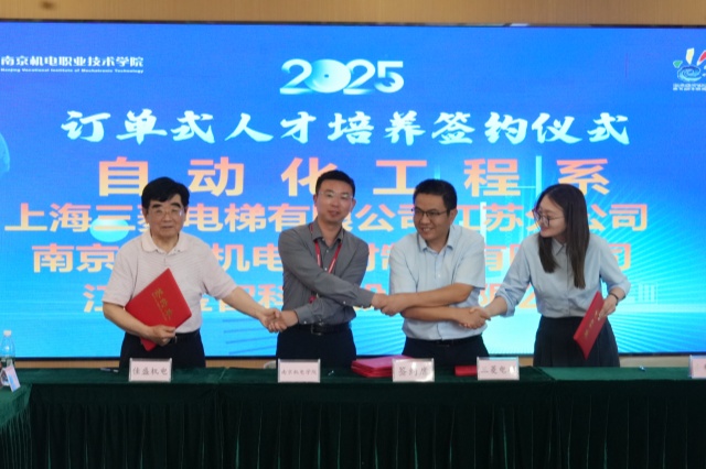 南京高职园管委会综合发展服务中心主任吴凯将南京高职园的情况向大家做了详细介绍,表达了对校企合作的支持与期待。在众人的见证下,学校党委委员、副校长刁爱军与中国电子科技集团公司第五十五研究所等5 家企业代表签署了校企合作协议,为双方在人才培养、科技成果转化等方面的深度合作奠定了坚实基础。