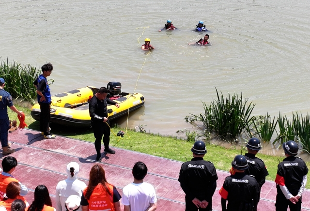 为切实增强学生的防溺水安全意识,提升学生自救互救能力,降低防溺水事故发生风险。6月6日,保卫处联合高淳区蓝天救援队、大学生应急管理协会,学校安保队员精心组织开展2025年防溺水安全演练活动。