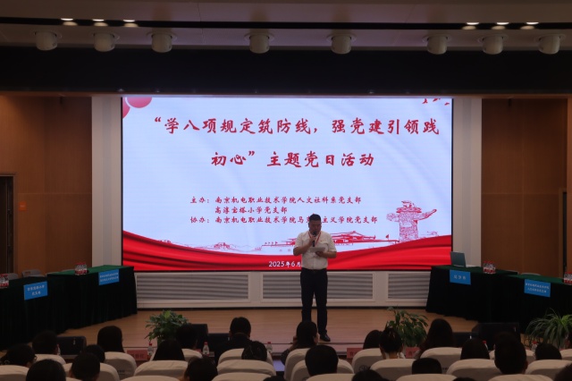 人文社科系全体党员、马克思主义学院教师代表、高淳宝塔小学教师代表齐聚一堂。人文社科系党支部书记李杰在启动仪式中强调,中央八项规定是全面从严治党的“先手棋”,本次活动以“学思践悟”为核心,通过“知识竞答强理论+团队协作促实践”的创新形式,推动党员干部将纪律要求内化为行动自觉。他特别指出,三方党组织跨领域联动是党建资源整合的有益尝试,要以活动为契机搭建长效合作平台,让八项规定精神在基层党建中落地生根。