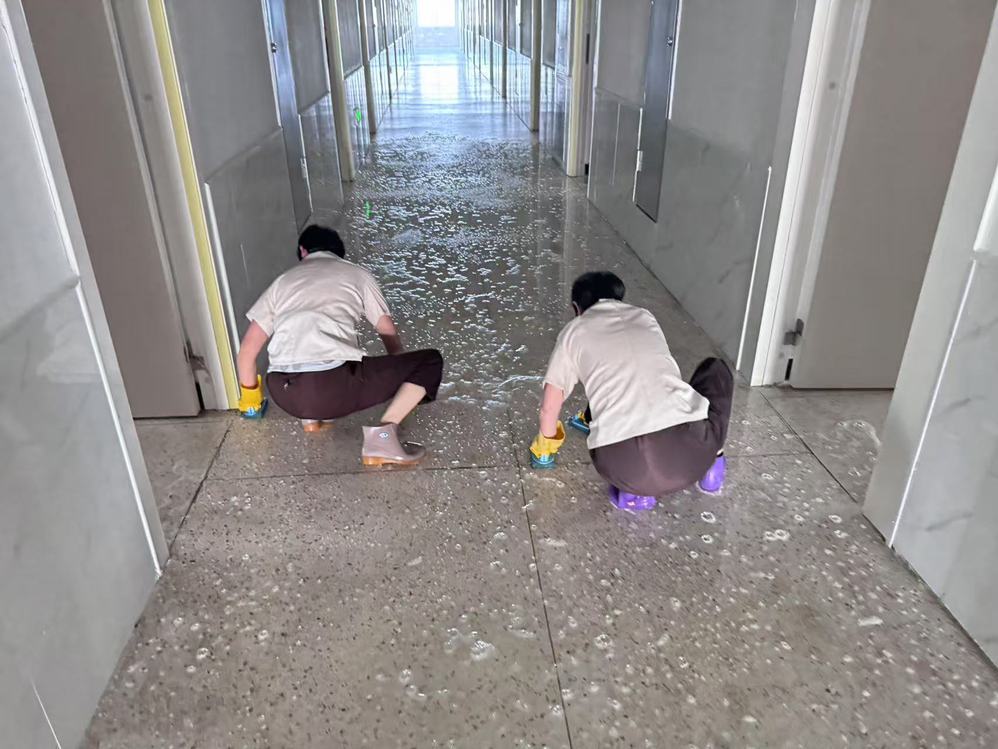 为全面提升校园环境品质,后勤处充分利用暑期黄金时段,科学规划、统筹推进校园改造工程。目前,各项工程正紧锣密鼓的开展:宿舍楼全面启动墙面修缮、过道墙砖更换及门框加固;空调专业团队逐间进行深度清洗维护;食堂实施标准化改造,优化功能分区;绿化养护团队对校园植被开展系统性修剪补种。与此同时,物业团队同步推进“精细化清扫”行动,对教学楼、办公楼、公共区域等进行了全方位清洁与消毒,确保校园环境在假期中焕然一新。