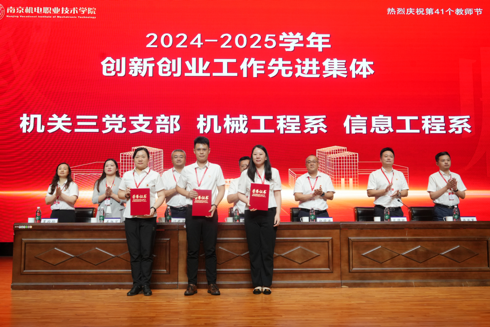 会上对2024-2025学年学院创新创业工作先进集体、先进个人和最佳搭档、第十届“高淳陶瓷杯”创新创意创业大赛暨第十一届中国国际“互联网+”大学生创新创业大赛校内选拔赛优秀组织奖、第二届青年教师基本功大赛获奖人员、2024-2025学年学生管理工作先进个人、学生管理工作先进集体、2024-2025学年校外综合管理、技能竞赛获奖者代表和2024-2025学年优秀教师、优秀教育工作者、优秀辅导员、2024-2025学年突出贡献奖获奖代表进行表彰。