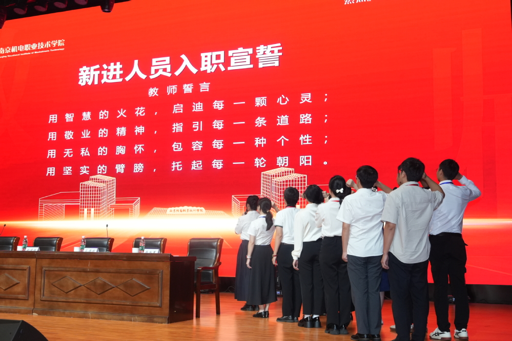 大会在庄严的国歌声中拉开序幕。党委书记、校长周庆礼为退休教职工代表仰潮红老师颁发荣休证书,以此致敬他们为学校发展作出的无私贡献。随后,11位新进教师现场进行入职宣誓。